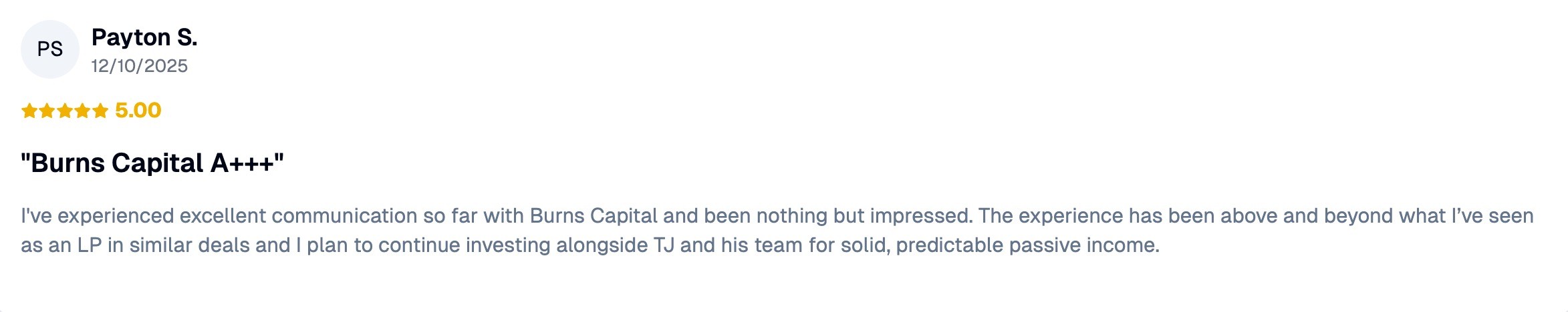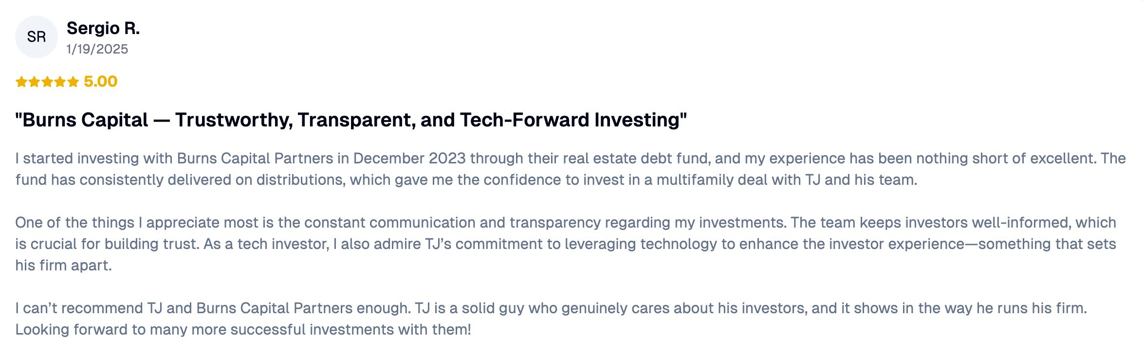 We're investor-first. The bulk of our incentive comes after a full return of capital to our investors.
